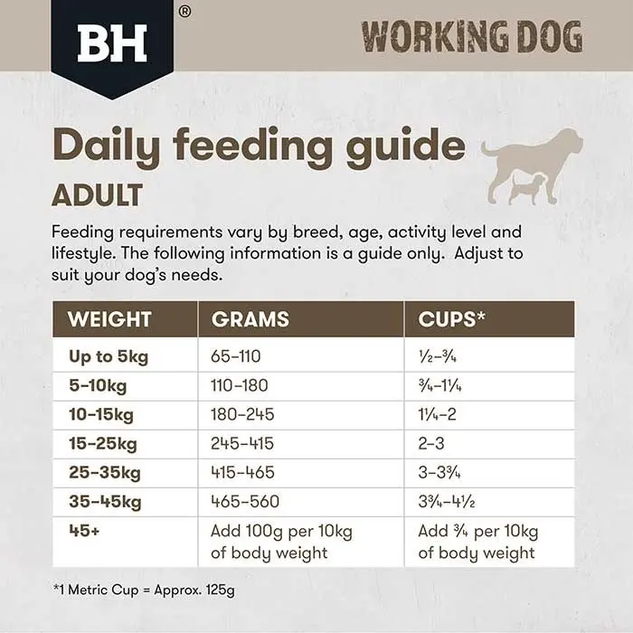 • Suitable for all breeds and sizes. Provides the energy needed by working dogs every day