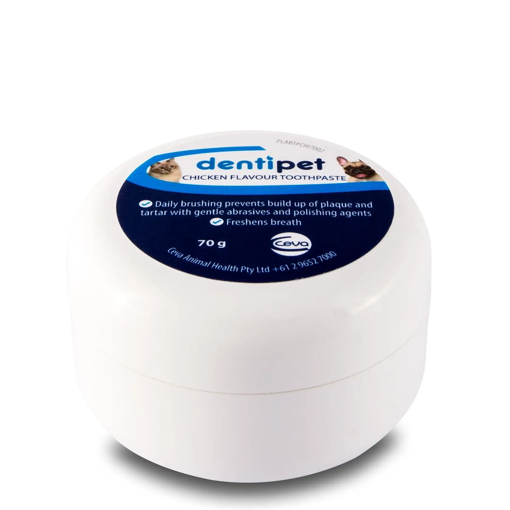 DentiPet Toothpaste for dogs and cats fights plaque and tartar with gentle abrasives and polishing agents. Freshens breath.