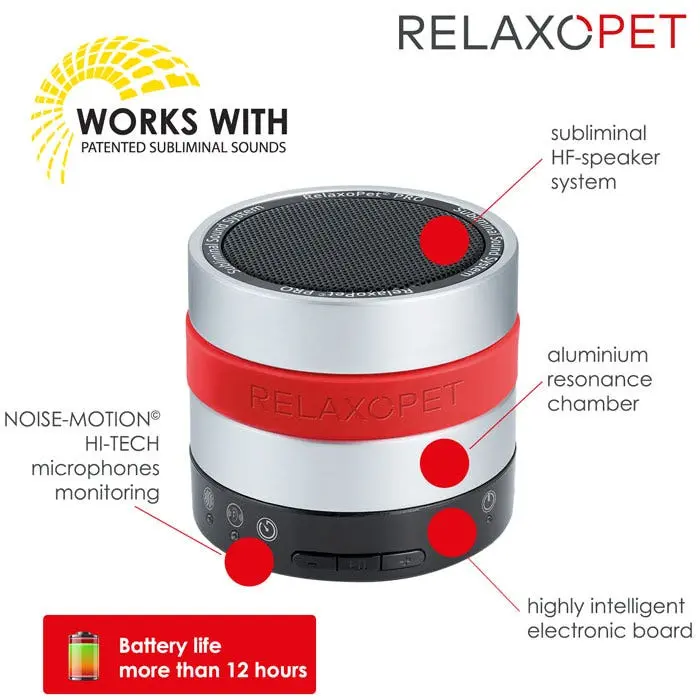 • Noise-motion.The new, innovative NOISE-MOTION system monitors the ambient noise fully automatically when the animal owner is absent using integrated DUAL microphones and when stressors are detected RelaxoPet Pro switches on for 30 minutes.