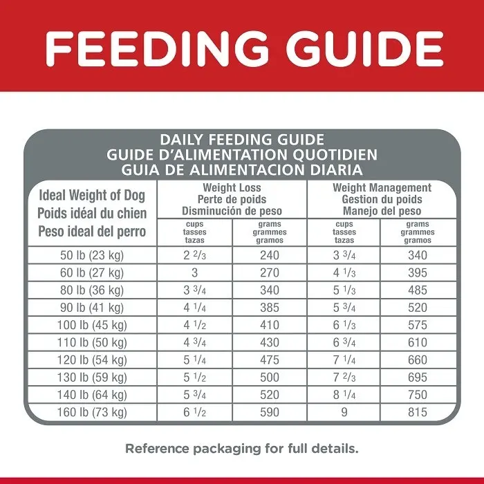 | Health Condition Dietary | Recommended for large breed dogs that are prone to gaining excess weight. It is suited for large breed dogs 1 – 5 years of age with an ideal weight of 25kg – 55kg, and giant breeds 1 – 4 years of age with an ideal weight of 55kg+. |