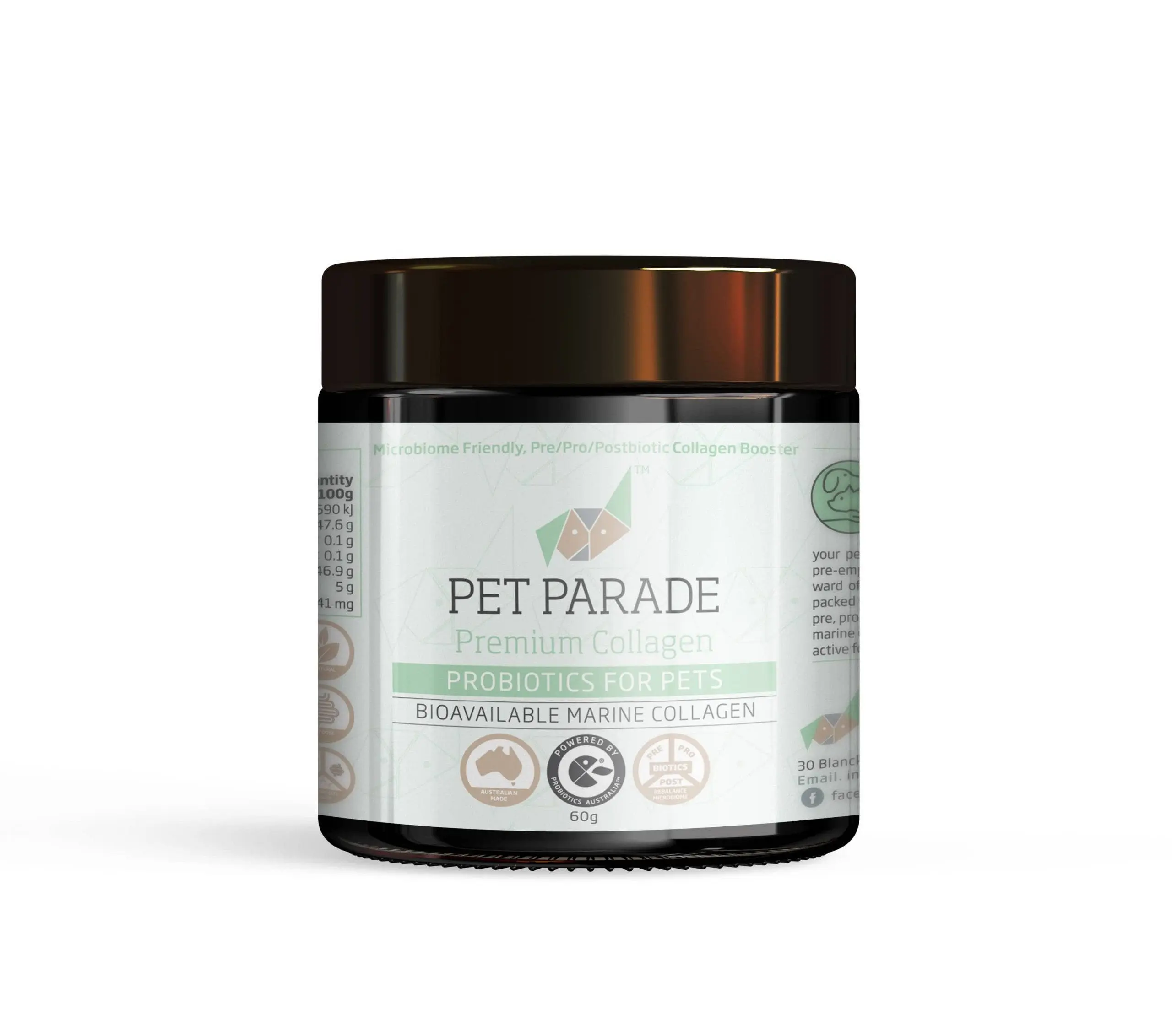 • Packed with anti-inflammatory and anti-microbial properties and amino acids, plus 10 billion good bacteria in every serve, IPROMEAs Pet Parade probiotic powder provides a steady supply of collagen, ensuring the support necessary to run, jump and play for years to come!