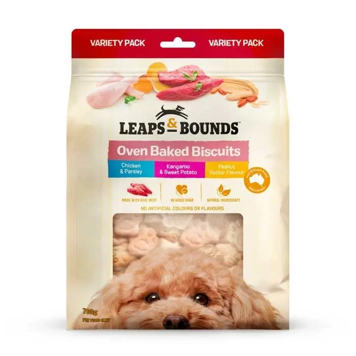 | Feeding Guide | For whenever they have been a good dog! Leaps & Bounds oven-baked dog treats are intended for supplementary feeding only. |