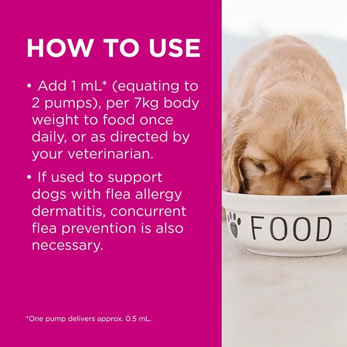 | Feeding Guide | Add 1mL (equating to 2 pumps), per 7kg body weight to food once daily or as directed by your veterinarian. One pump deivers approximately 0.5mL. |