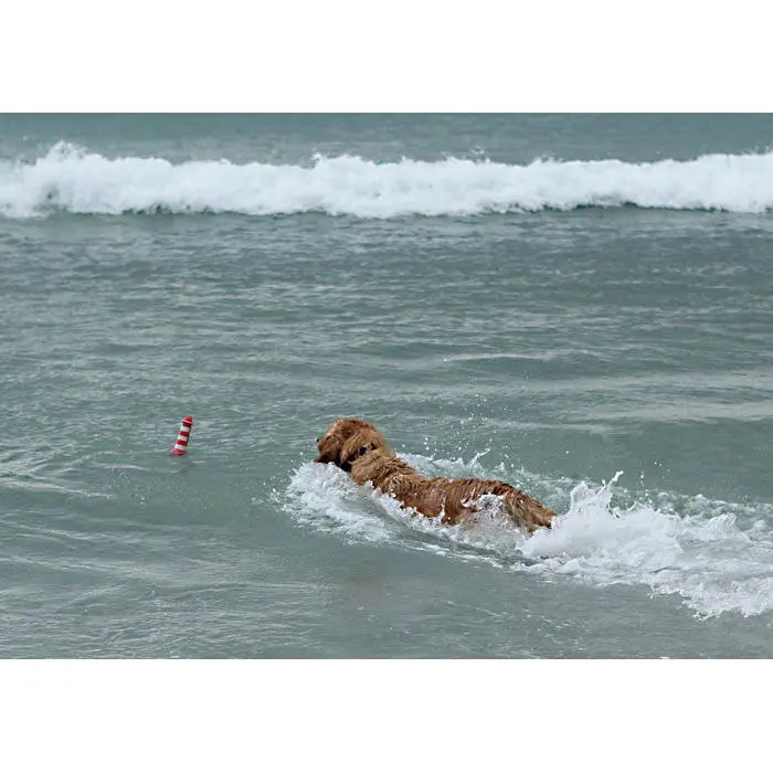 • High Visibillity – The contrasting red and white stripes are specially visible to dogs and makes it easier for them to fetch their toy in any type of water conditions.