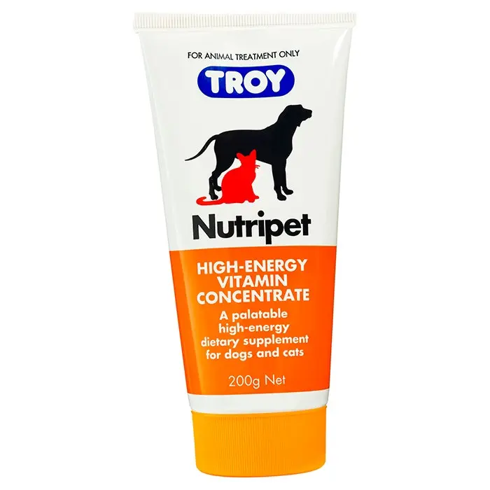 Sometimes, dogs and cats need a little help ensuring they’re getting enough vitamins and essential nutrients in their diet. This high-energy vitamin concentrate from Troy’s Nutripet range provides an added boost of essential nourishment to supplement balanced diets. This formula contains a combination of vitamins crucial for healthy development, along with added calcium, magnesium and proteins.
