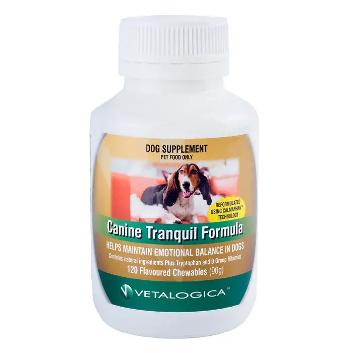 Dogs are often subject to distressing situations such as thunderstorms, being frightened of strangers, aggression or even being left alone. Canine Tranquil Formula contains natural ingredients plus tryptophan and essential B group vitamins in precise ratios to help maintain normal emotional balance in dogs. In delicious chicken flavoured tablets, it can be given as a treat to puppy and adult dogs with or without food. Should be given in conjunction with a balanced diet. Consult your veterinarian regularly for further information and advice.